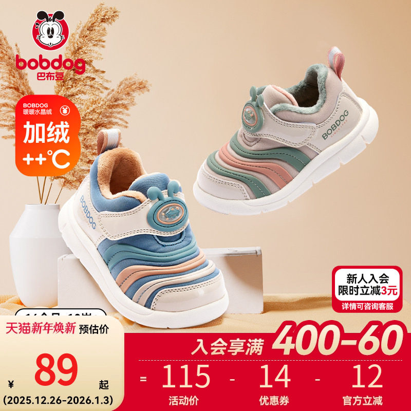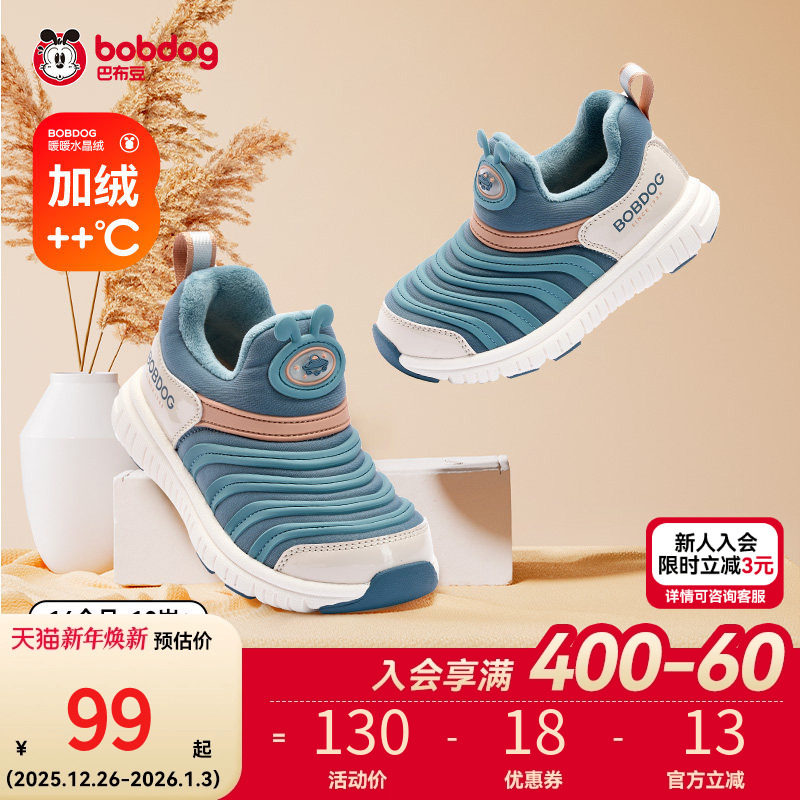 巴布豆男童鞋2025新款毛毛虫童鞋女童春秋儿童秋冬加绒男童运动鞋