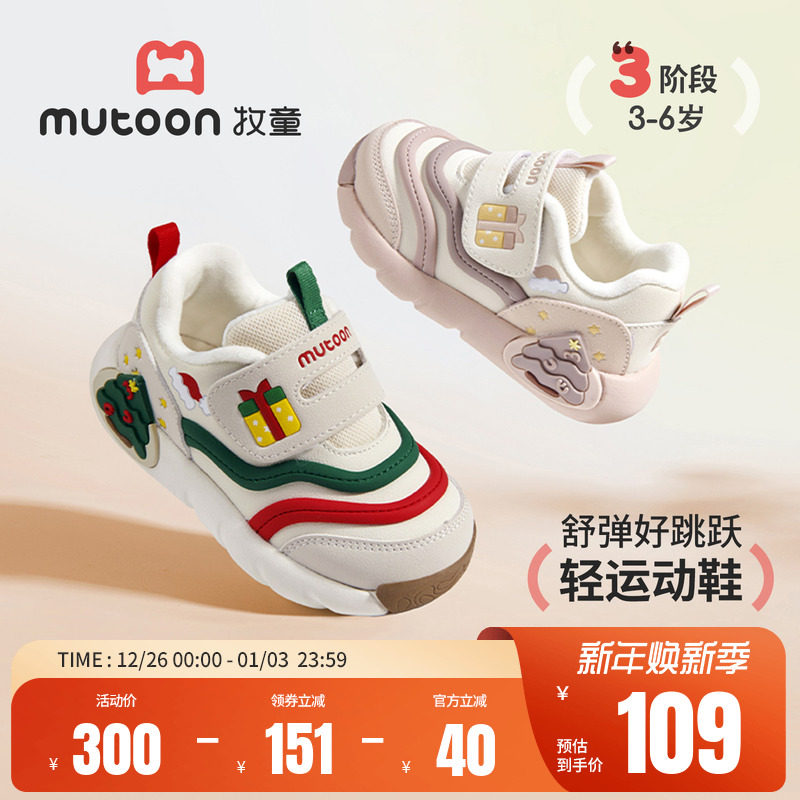 牧童学步鞋2025冬季新款圣诞风男童运动鞋毛毛虫鞋女轻便加绒棉鞋