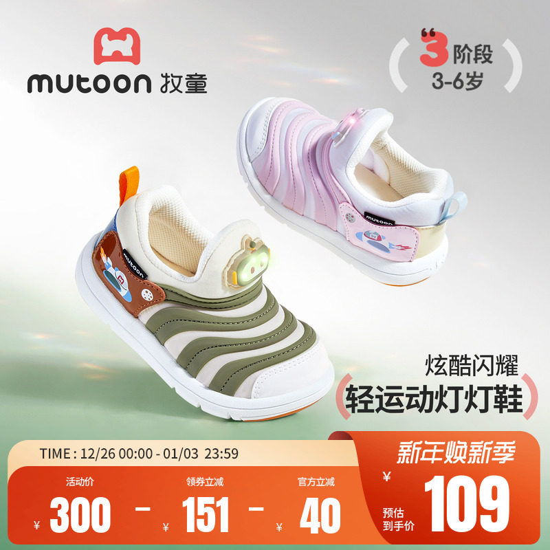 牧童儿童运动鞋男童2026春季新款闪灯机器人轻便女幼童毛毛虫童鞋