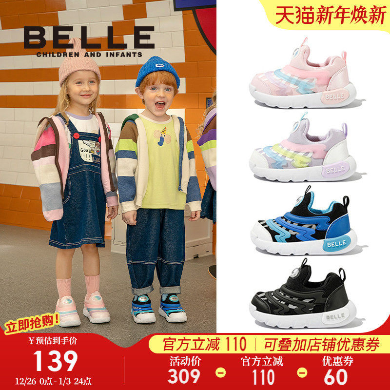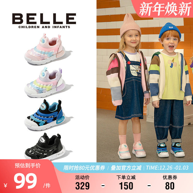 百丽童鞋儿童毛毛虫鞋秋季轻便一脚蹬运动鞋小童男女童软底休闲鞋