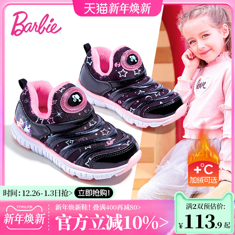 芭比毛毛虫童鞋女童运动鞋2025新款秋冬加绒保暖二棉鞋儿童休闲鞋
