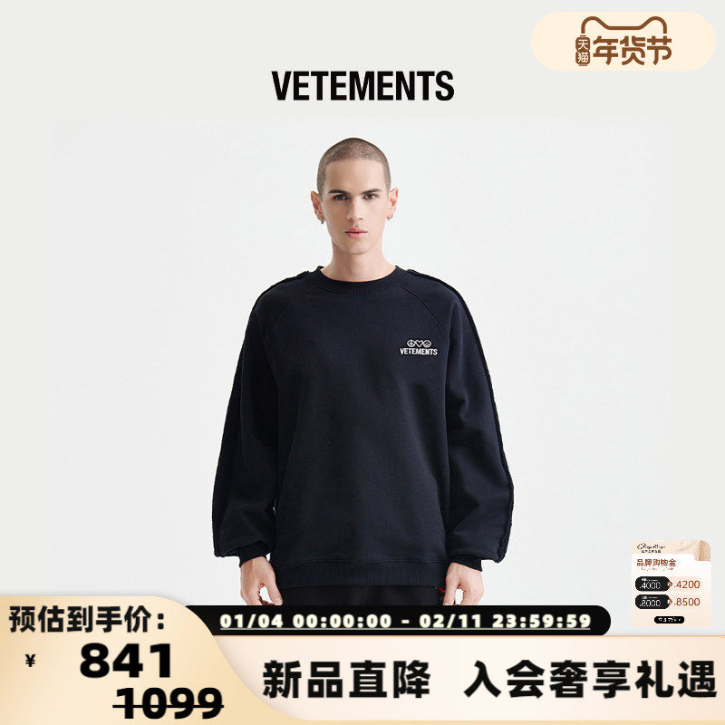 VETEMENTS卫衣男女同款做旧贴布绣花工艺宽松圆领卫衣14550001