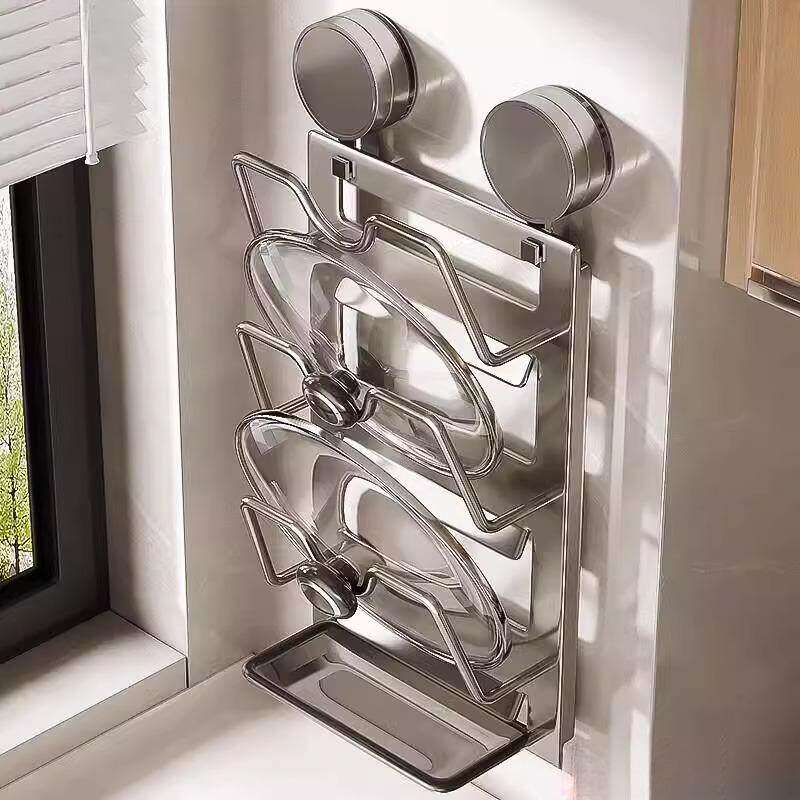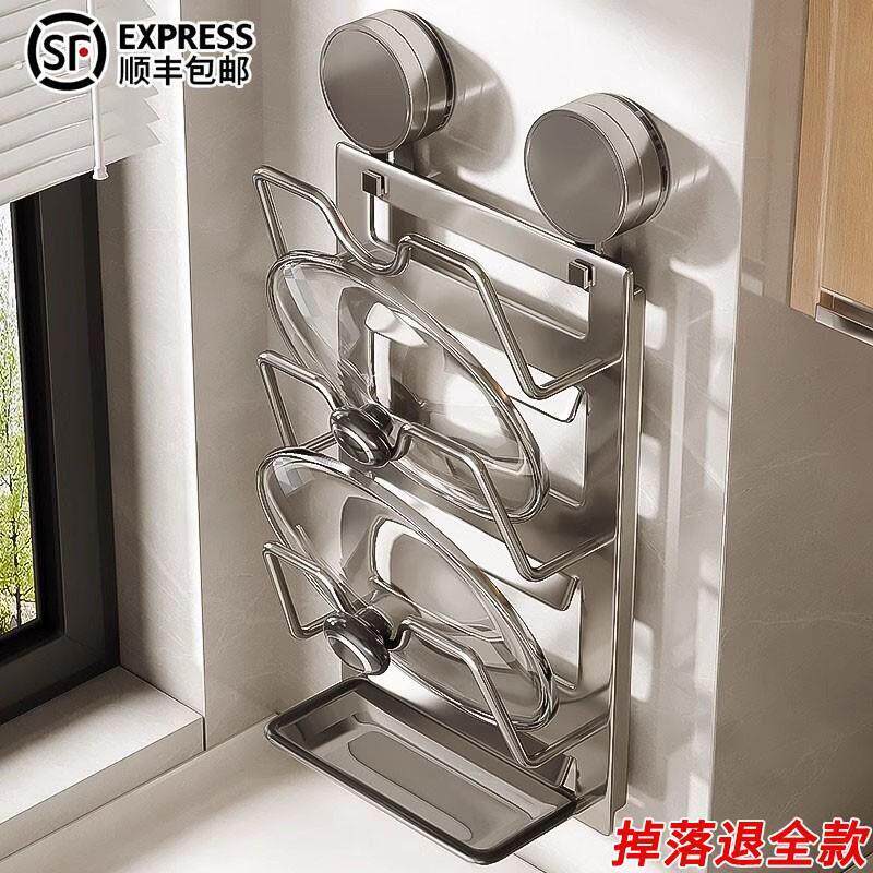 德国精品吸盘锅盖架免打孔厨房壁挂式置物架多功能多层菜板收纳架