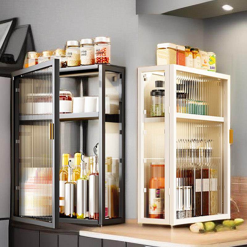 厨房壁挂式置物架免打孔家用防尘带门调料调味品置物架挂墙收纳柜