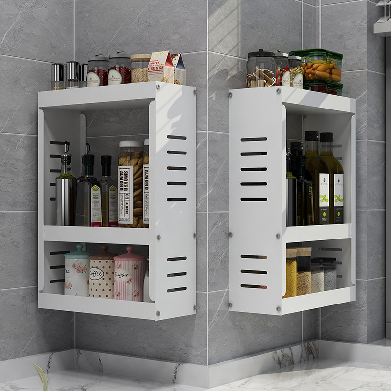 厨房壁挂式置物架免打孔家用墙挂收纳带防尘置物架门柜调味品调料