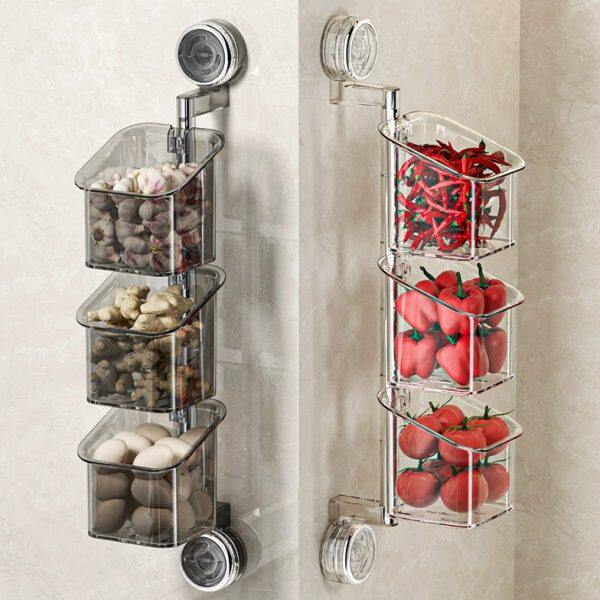 厨房壁挂式置物架家用多功能强力吸盘收纳盒墙上免打孔姜葱收纳筐