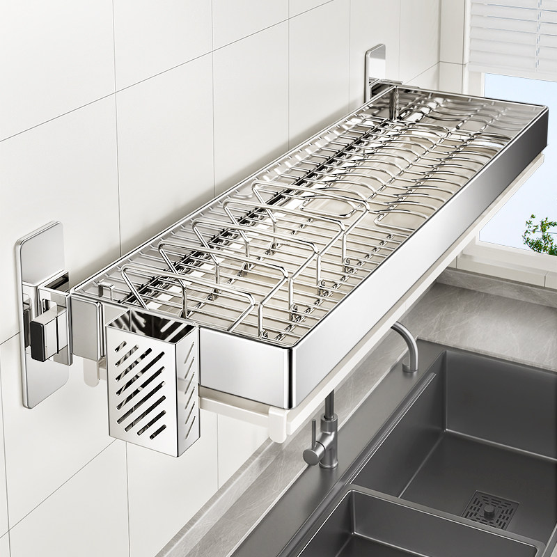 304不锈钢厨房壁挂式置物架碗碟收纳架上墙碗盘子沥水架挂壁碗架
