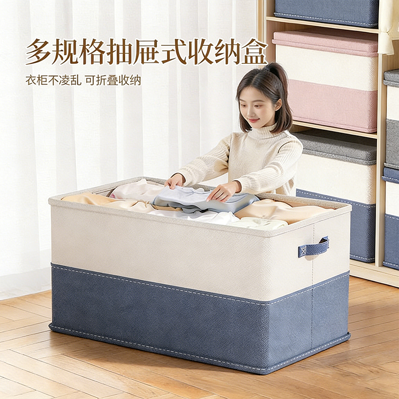布艺收纳箱定制学校抽屉式无异味可水洗储物盒折叠玩具衣物整理箱