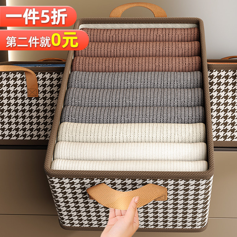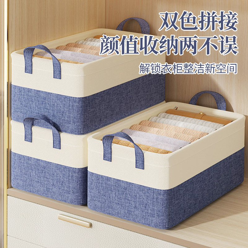 棉麻收纳盒家用衣柜分层神器布艺收纳箱棉麻衣服裤子储物箱整理盒