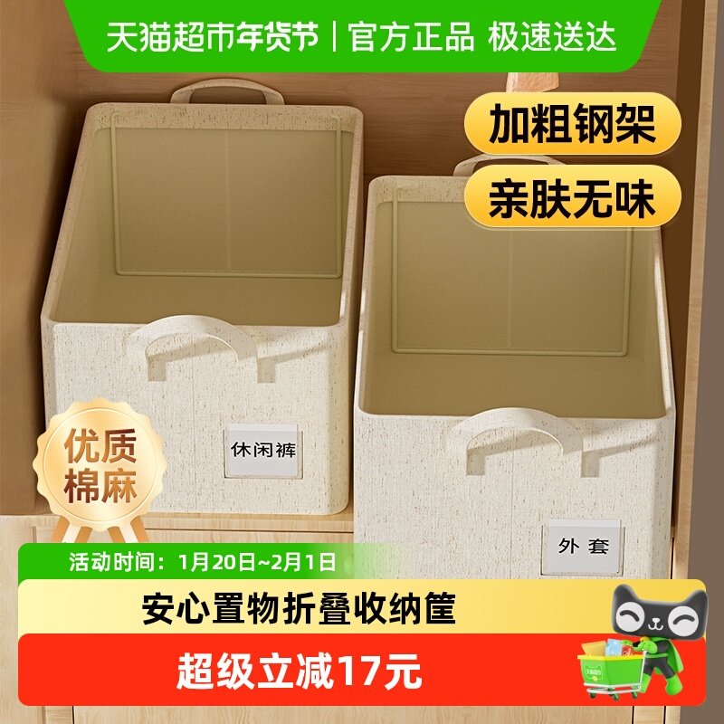 棉麻布艺收纳箱家用可折叠衣柜衣服物装被子整理储物盒换季新神器