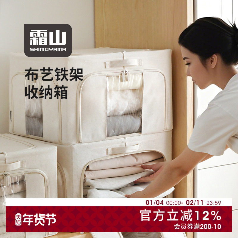 霜山布艺收纳箱可折叠带视窗储物箱衣柜衣物棉被百纳箱搬家整理箱