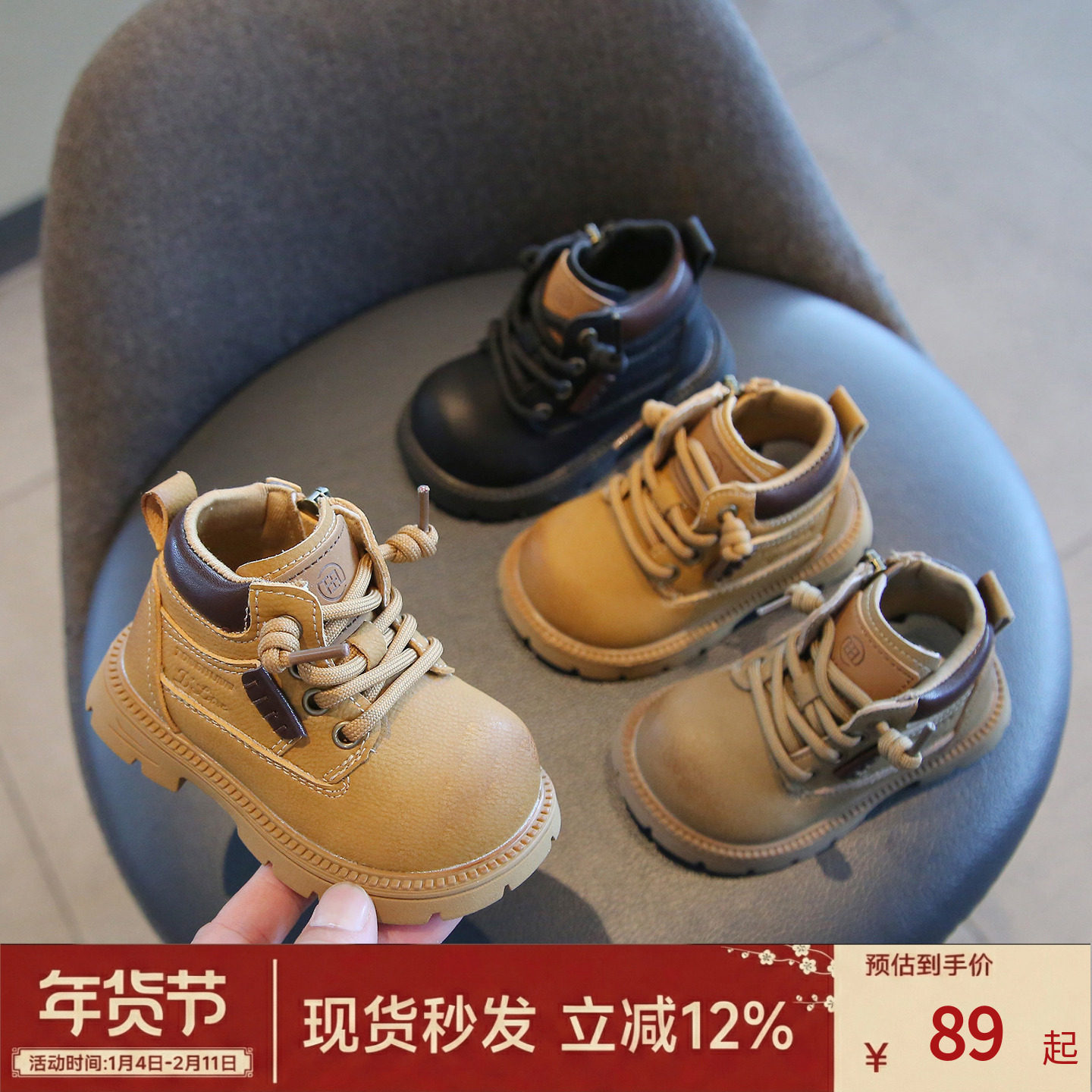 小童马丁靴秋冬季新款宝宝加绒短靴婴儿童软底学步鞋子男童鞋女童