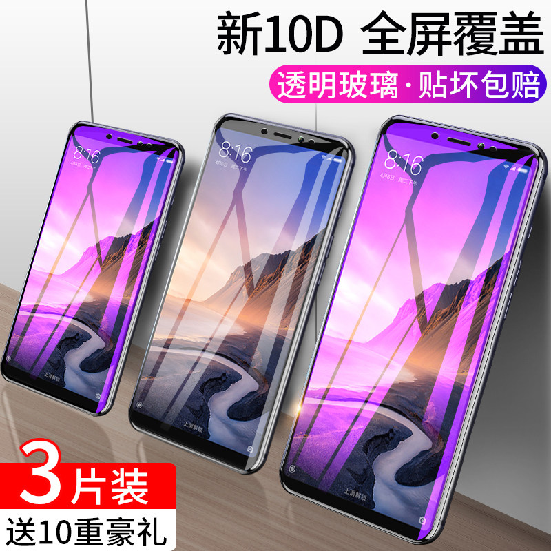 小米max3钢化膜max全屏防蓝光6.44寸原装防爆max2手机全覆盖大屏玻璃贴膜无白边送壳6.9玻璃1防摔屏保mi max1