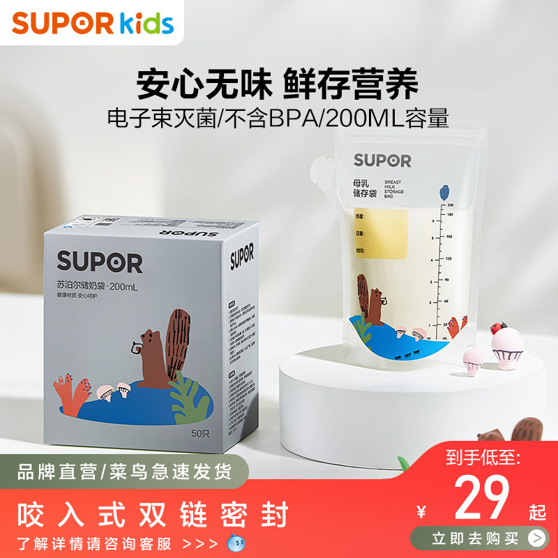 苏泊尔储奶袋冰箱母乳专用储存一次性小容量200ML存奶袋保鲜奶袋