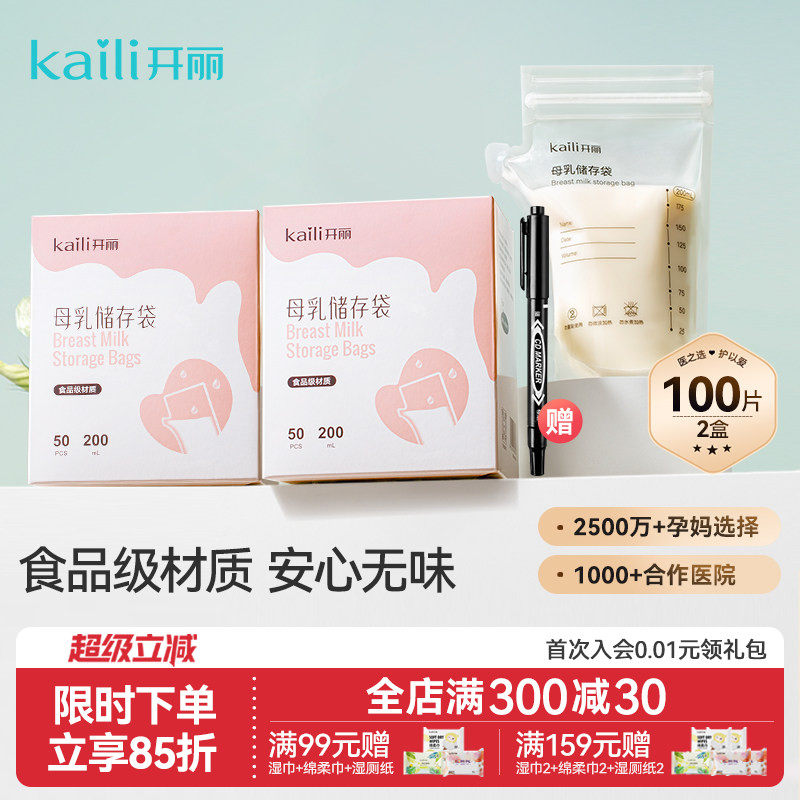 开丽储奶袋母乳储存保鲜袋壶嘴型冷冻人奶存奶袋200ml送记号笔