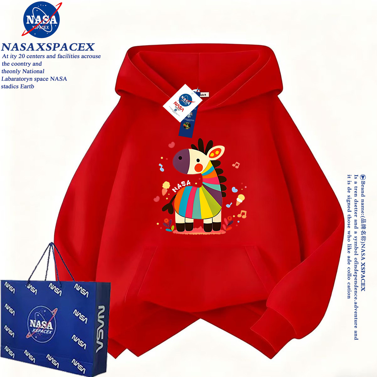 NASA联名加绒保暖连帽12岁本命年马年红色卫衣男童女童秋冬装外套
