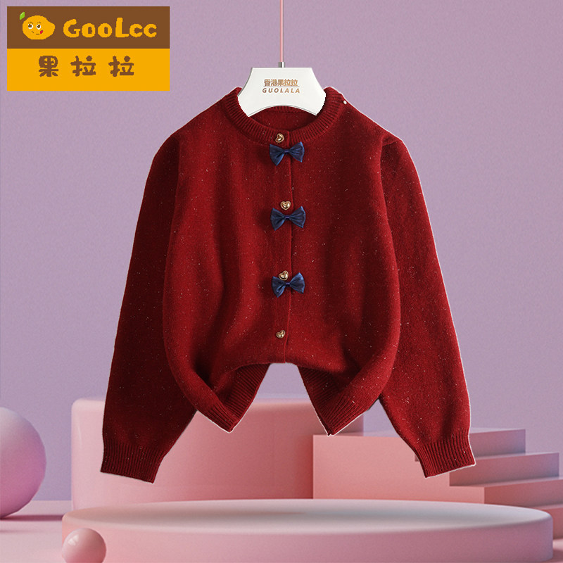 12岁女孩毛衣外套女童蝴蝶结针织开衫洋气红色拜年服2026新款秋冬
