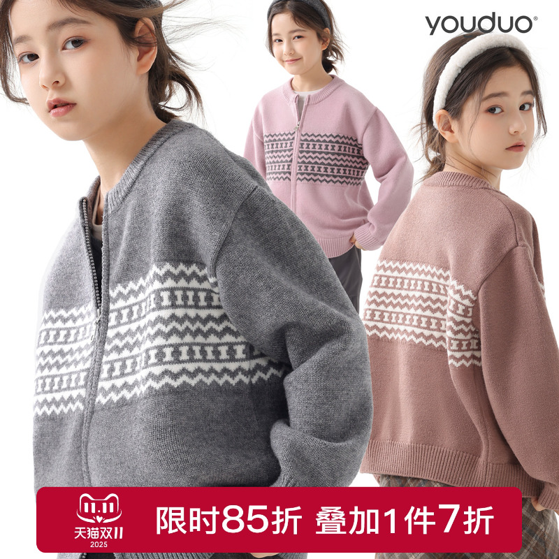 女童毛衣开衫外套25秋冬新款儿童装圆领上衣大童青少年拉链针织衫