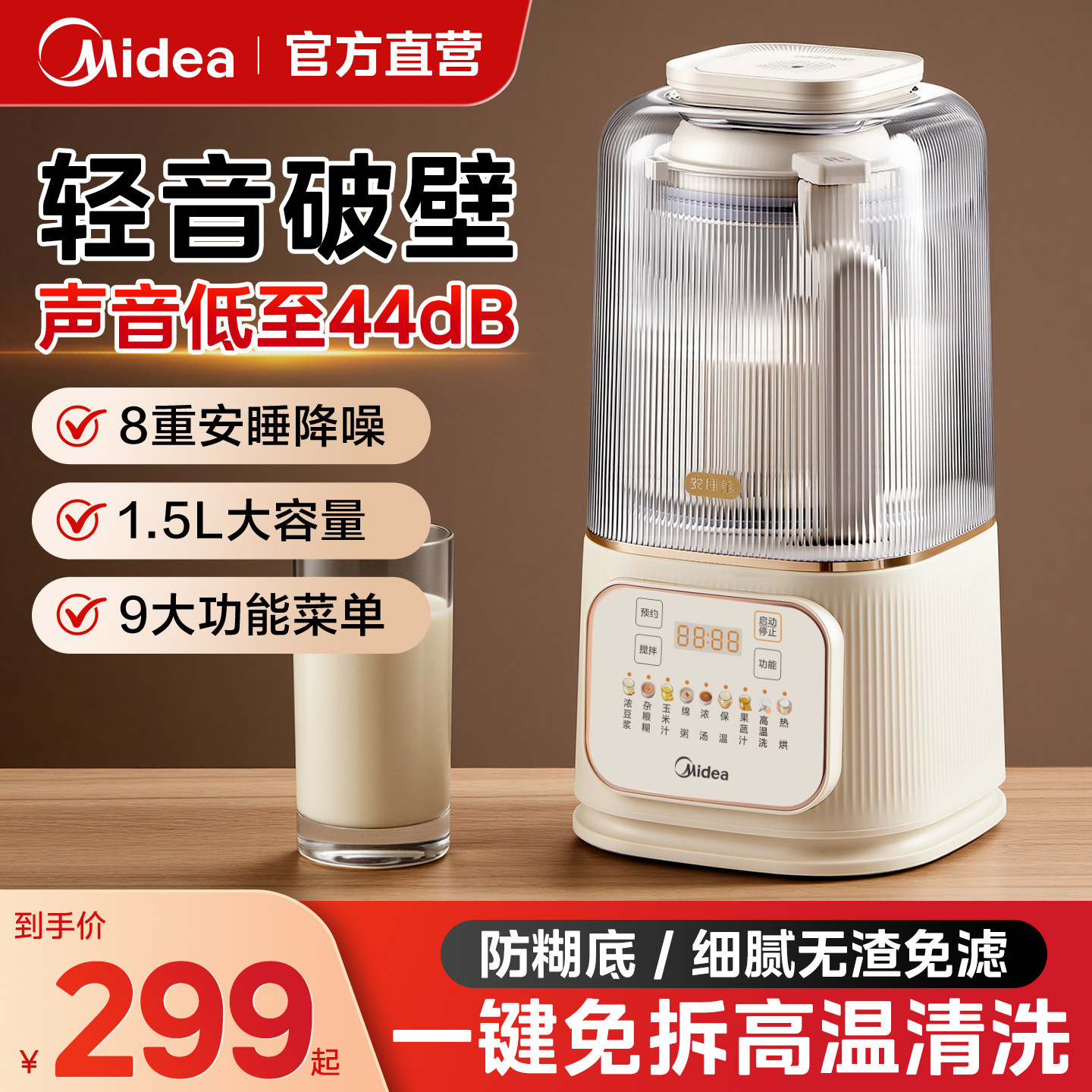 美的安睡破壁机家用多功能低音柔声豆浆机可拆洗全自动料理烹饪机