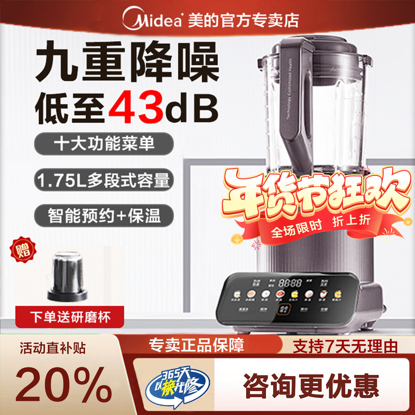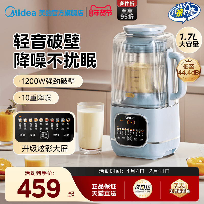 美的破壁机家用隔音罩新款豆浆机多功能料理机榨汁机官方旗舰店静