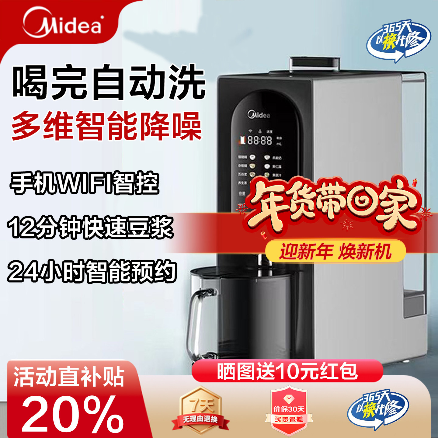 美的破壁机免手洗家用全自动大容量免煮多功能预约豆浆机料理机新