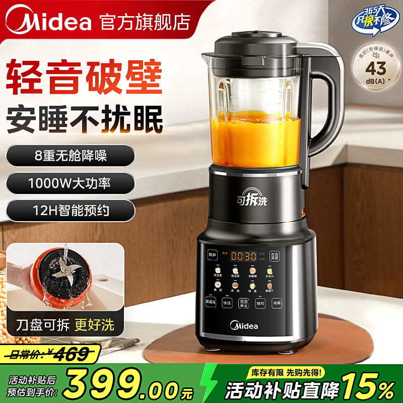 美的破壁机豆浆机家用全自动静低音新款小型多功能榨汁机官方旗舰