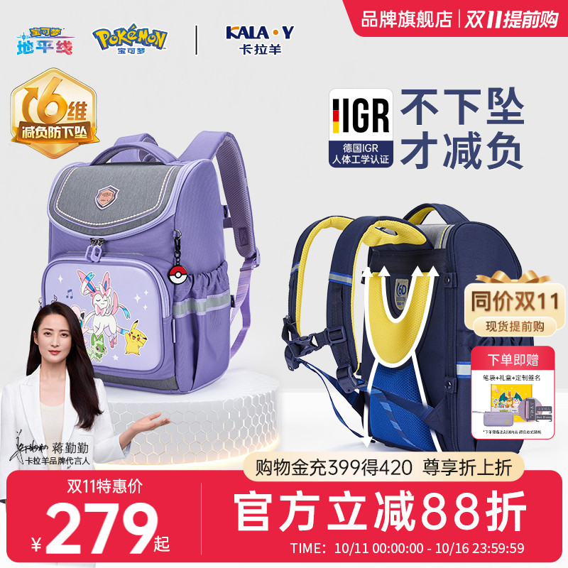 【宝可梦联名】卡拉羊小学生书包1-4-6年级减负护脊新款大嘴书包3.0超轻大容量一年级男孩女生背包皮卡丘