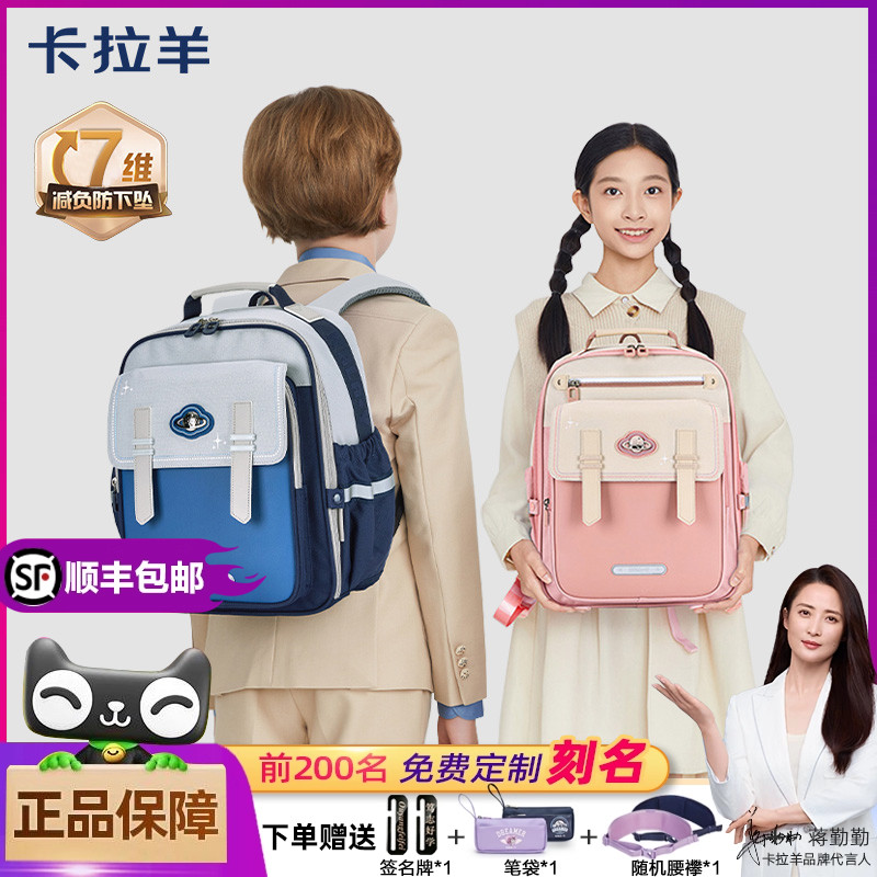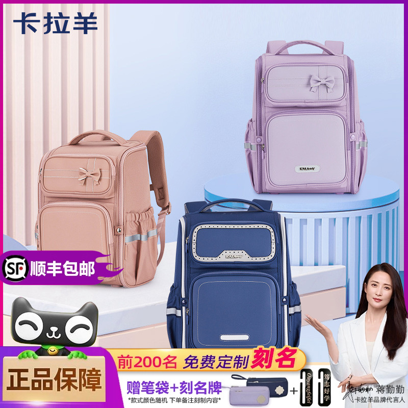 卡拉羊防下坠书包女生小学生1一4一6年级轻便减负高颜值双肩包男
