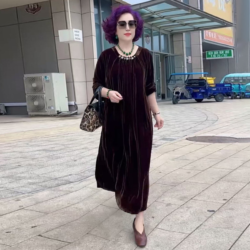 朵莹妈妈秋装高端洋气连衣裙2025新款女金丝绒裙子中老年洋气长裙