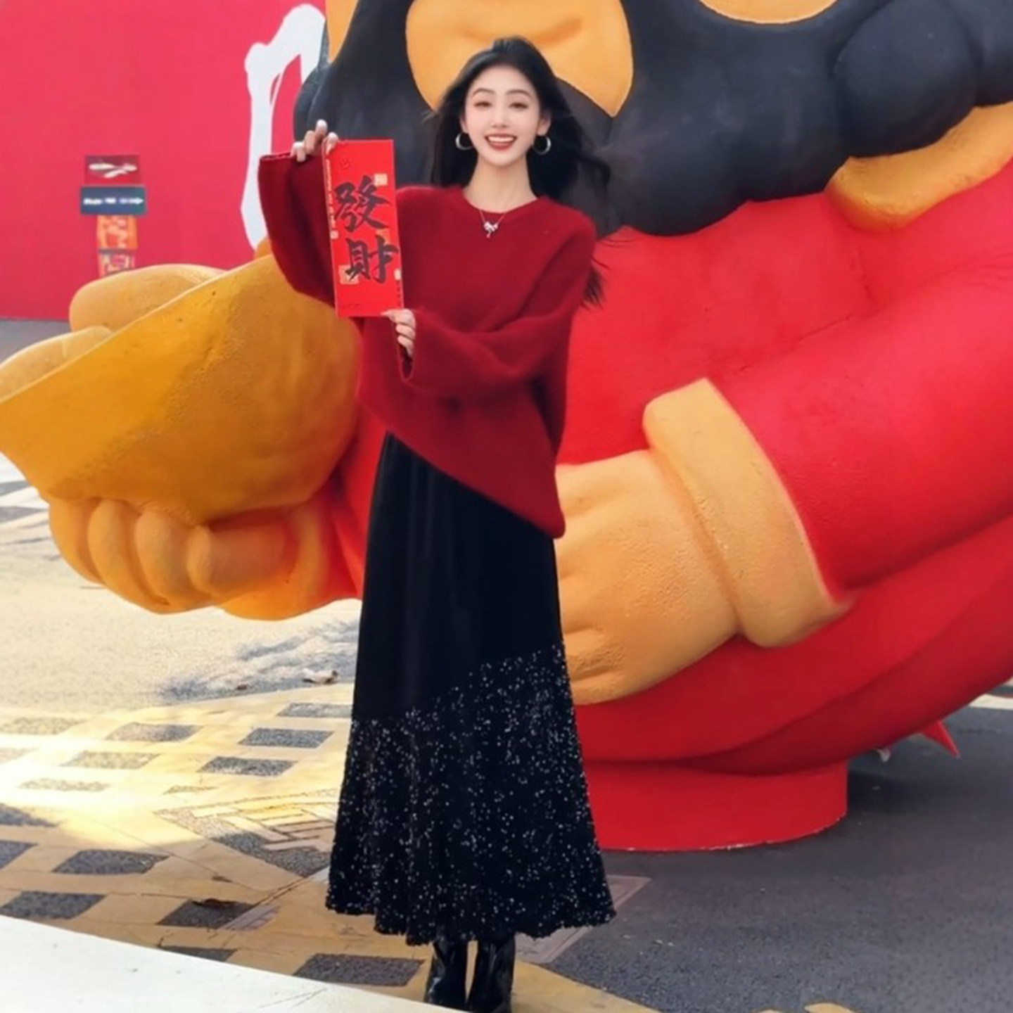 - 半身裙秋冬 中长款 黑色