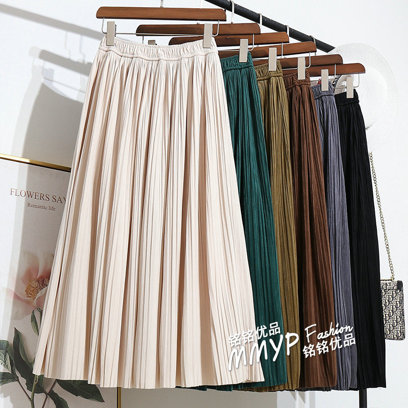 冬季加厚绿色丝绒百褶裙半身裙秋冬女新款金丝绒裙子半裙长裙冬裙
