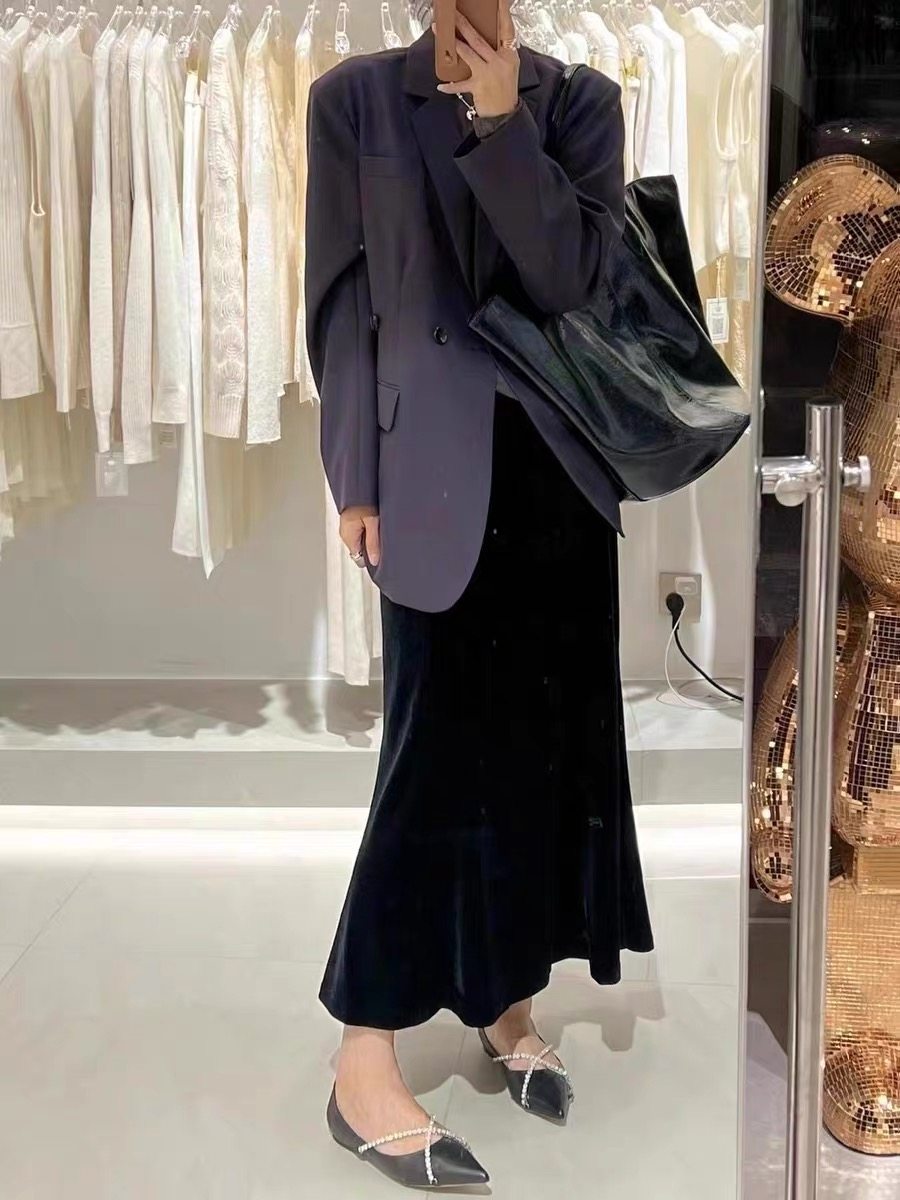 金丝绒半身裙女中长款2025新款秋冬季高腰显瘦高级感开叉直筒裙子