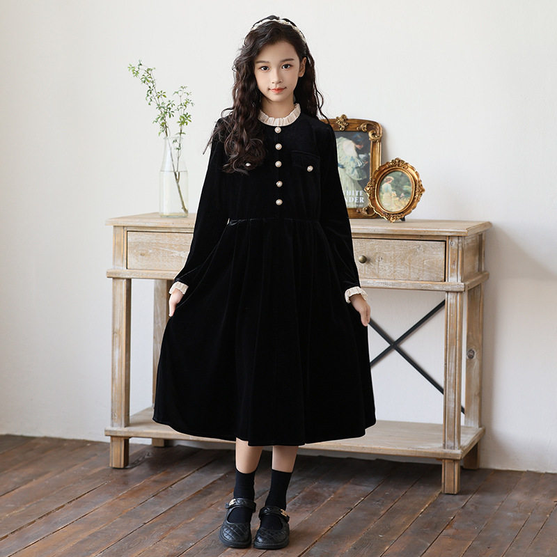 中大女童连衣裙2025新款小香风金丝绒裙子甜美长袖洋气公主裙秋冬