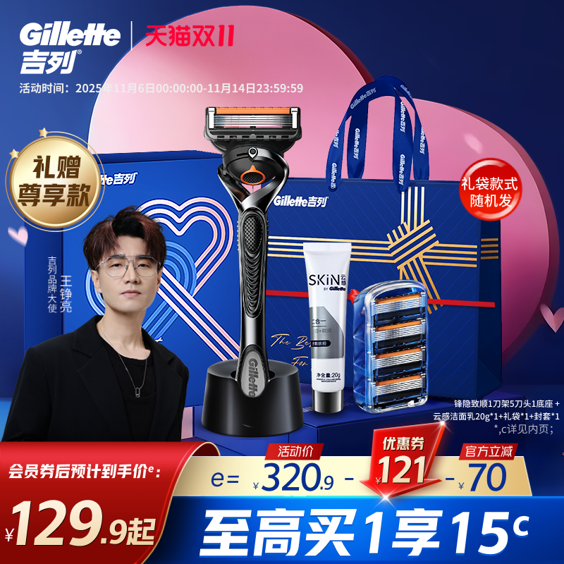 吉列锋隐致顺5层手动剃须刀片非吉利男士刮胡刀头礼盒款送礼礼物