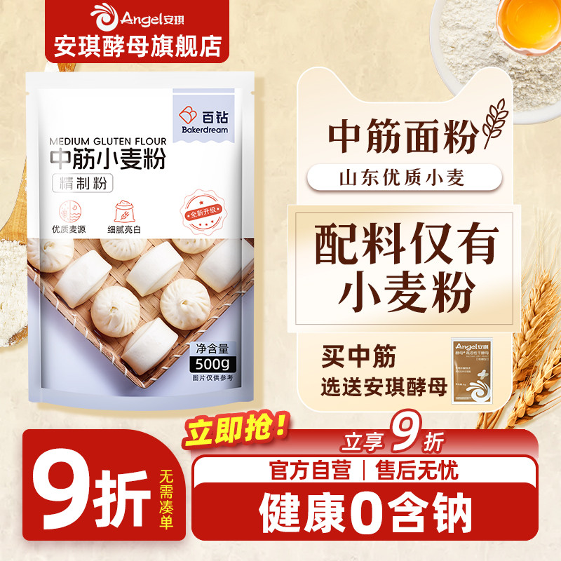 百钻中筋面粉月饼蛋黄酥专用烘焙材料家用包子馒头花卷小麦粉500g