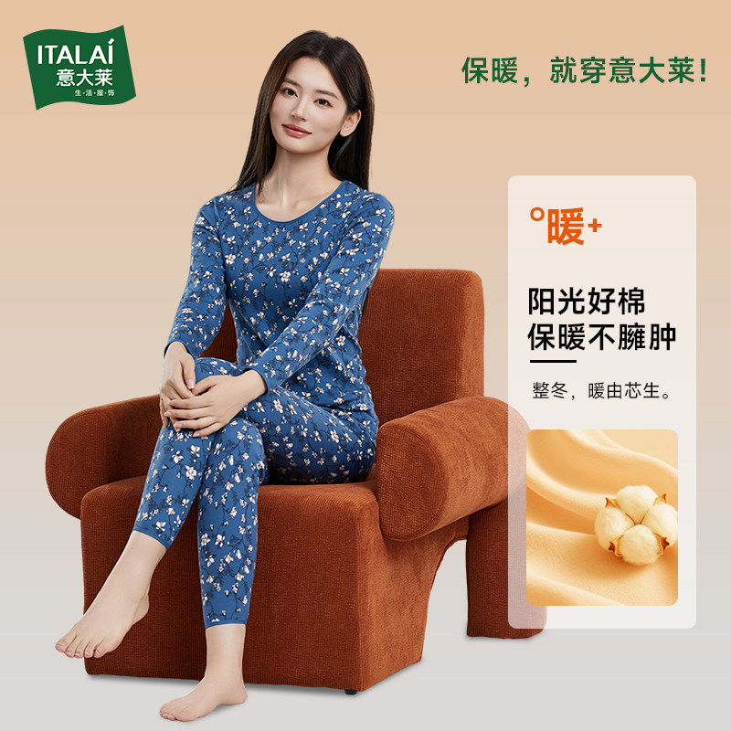 Italai/意大莱全棉保暖秋内衣套装秋冬加肥大码秋衣秋裤打底保暖