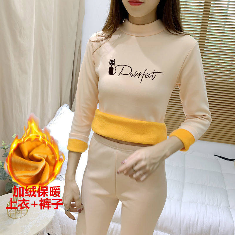 大码保暖内衣女士套装冬季加绒加厚学生少女中高领秋衣秋裤打底衫
