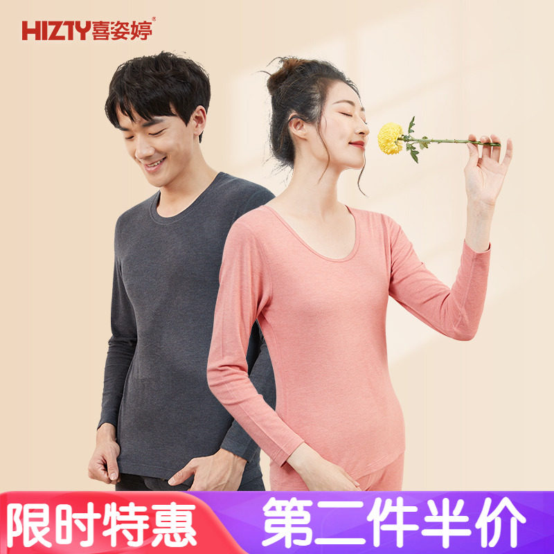 喜姿婷发热纤维棉保暖内衣男士秋衣秋裤打底套装女青年情侣秋冬薄