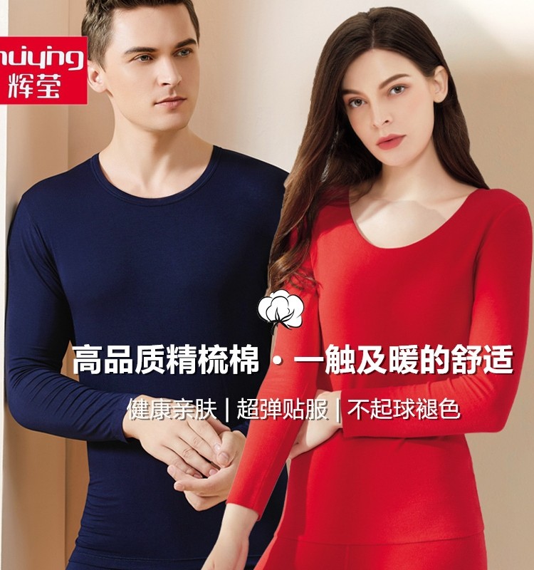 辉莹保暖内衣男士女士秋衣秋裤打底纯棉毛衫情侣全棉薄款套装大码