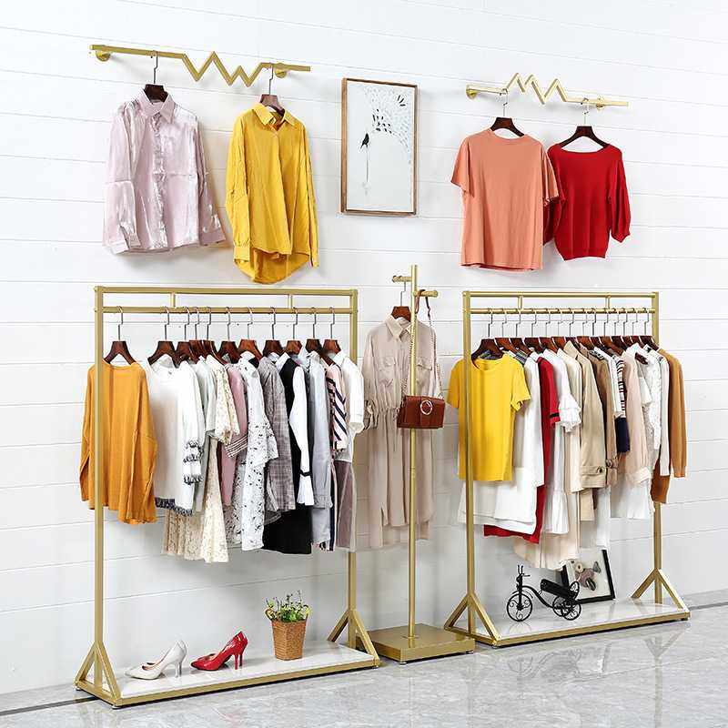 金色铁艺服装架衣服展示架陈列架落地式女装店衣架服装店货架架子