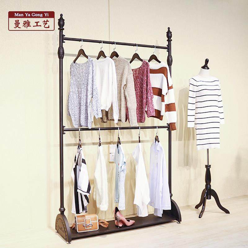 落地式女挂衣服装店衣架展示架 高档复古铁艺服装架子货架侧挂架