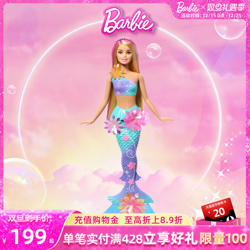 芭比娃娃Barbie梦幻花朵美人鱼童话系列女孩穿搭玩具互动体验