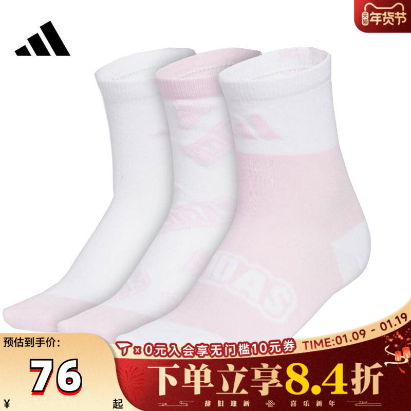 adidas阿迪达斯女大童GFX CRW SOCK 3P休闲袜子KC2750