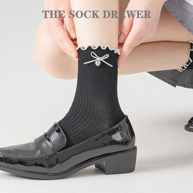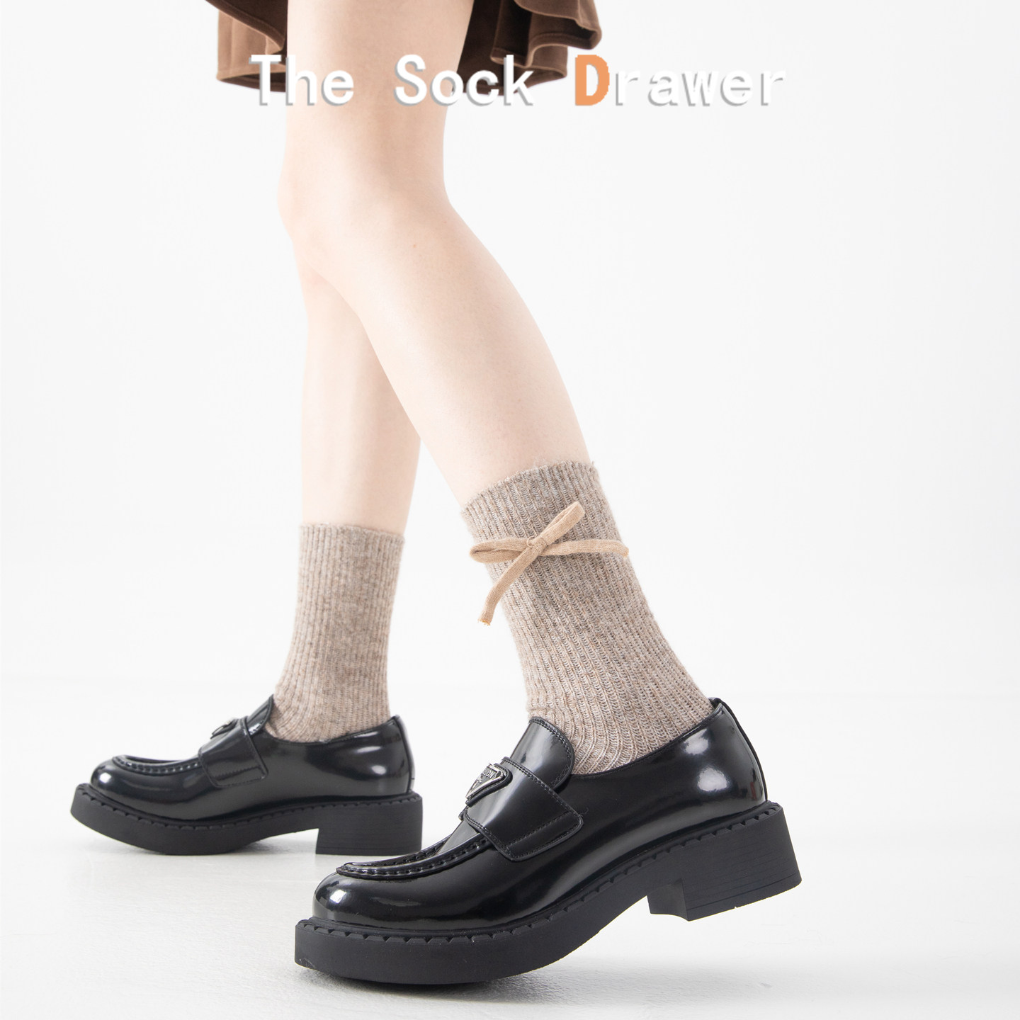 羊毛袜子女中筒秋冬加厚保暖蝴蝶结饰品袜韩版东大门长袜配小皮鞋