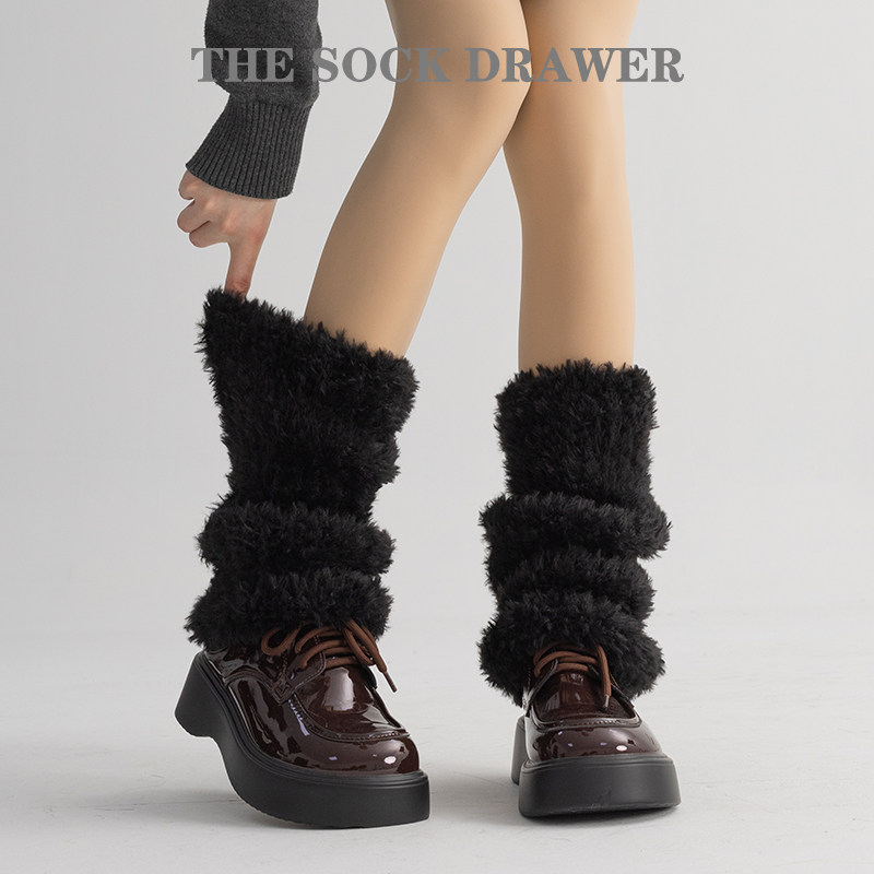 仿兔绒皮草袜子女冬黑色袜套加绒加厚保暖毛毛堆堆袜配小皮鞋腿套