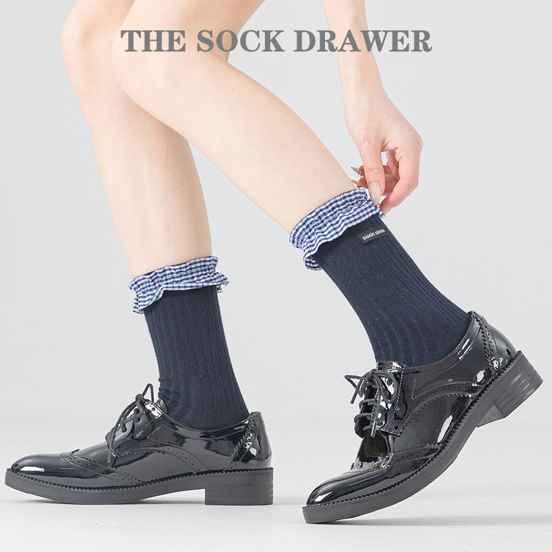 miu系袜子格纹荷叶边布标纯色中筒纯棉堆堆袜芭蕾风袜子配小皮鞋