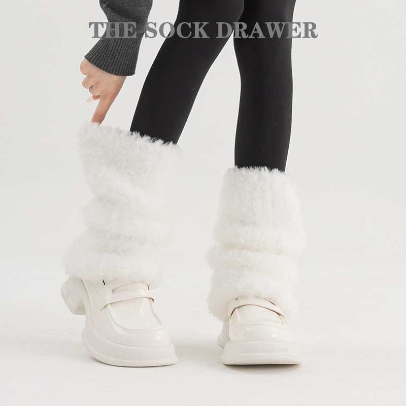 仿兔绒皮草袜子女冬白色袜套加绒加厚保暖毛毛堆堆袜配小皮鞋腿套