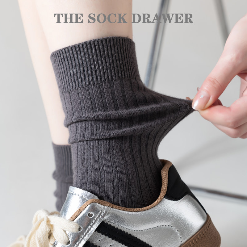 堆堆袜套秋冬季袜子女中筒袜深灰色配勃肯鞋小腿套y2侧开叉腿袜