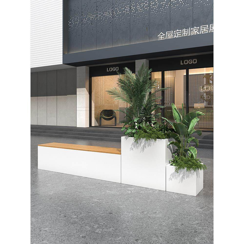 定制铁艺坐凳花箱户外座椅组合花坛室外不锈钢花盆售楼部花槽花架