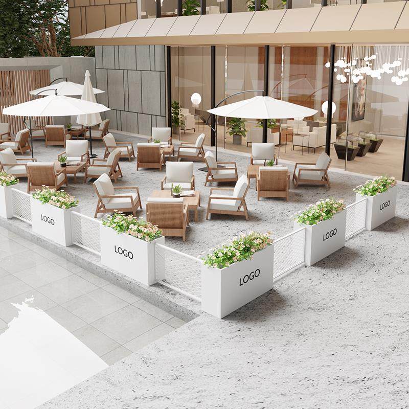 户外餐厅花槽花架子饭店餐饮木栅栏隔断围栏商业街防腐木花箱护栏